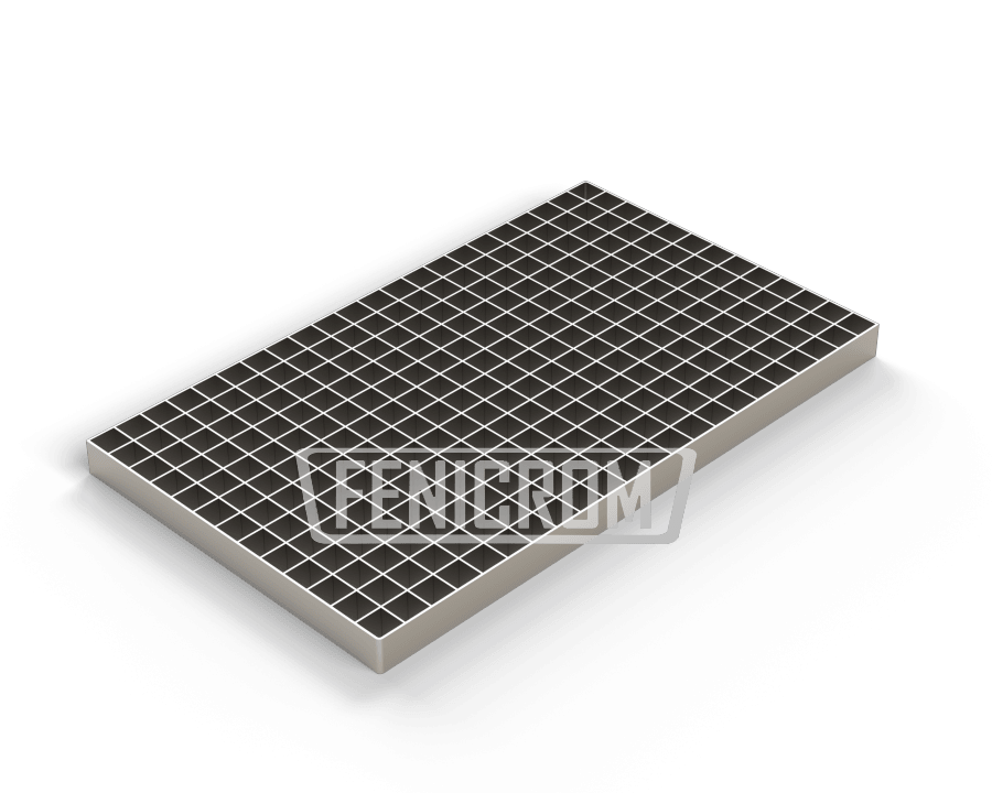 Anti-slip masknätsgaller i rostfritt stål ser ut som en bikaka med hål på 20 x 20 mm. Transportvagnar med hjul med en diameter på 80 mm kan transporteras över detta nät utan problem. Nätgaller består av 25 mm höga och 1,2 mm tjocka stålband som går ihop som kammar. Dessa nätgaller är argonbågsrobot svetsade på båda sidor och vid alla korsningar. Eftersom den är helt svetsad kommer den, om den används under lämpliga förhållanden, att hålla sin ursprungliga form i flera år.