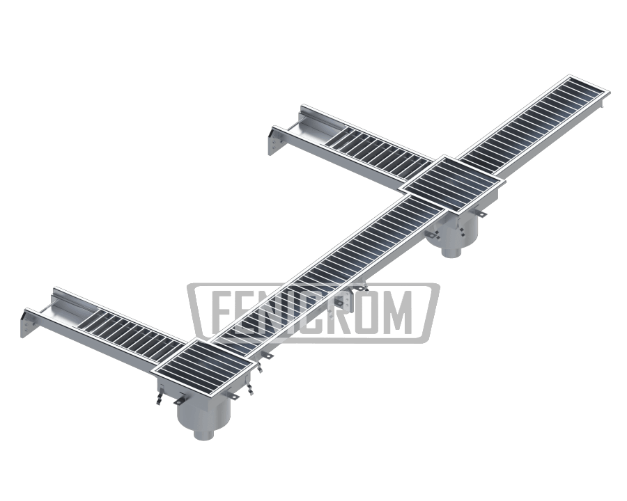 Golvavloppsränna med galler END Multi: Tung belastning: B125/C250/D400 Vertikal (bottenutlopp) INTE Isolerad 135mm DN150