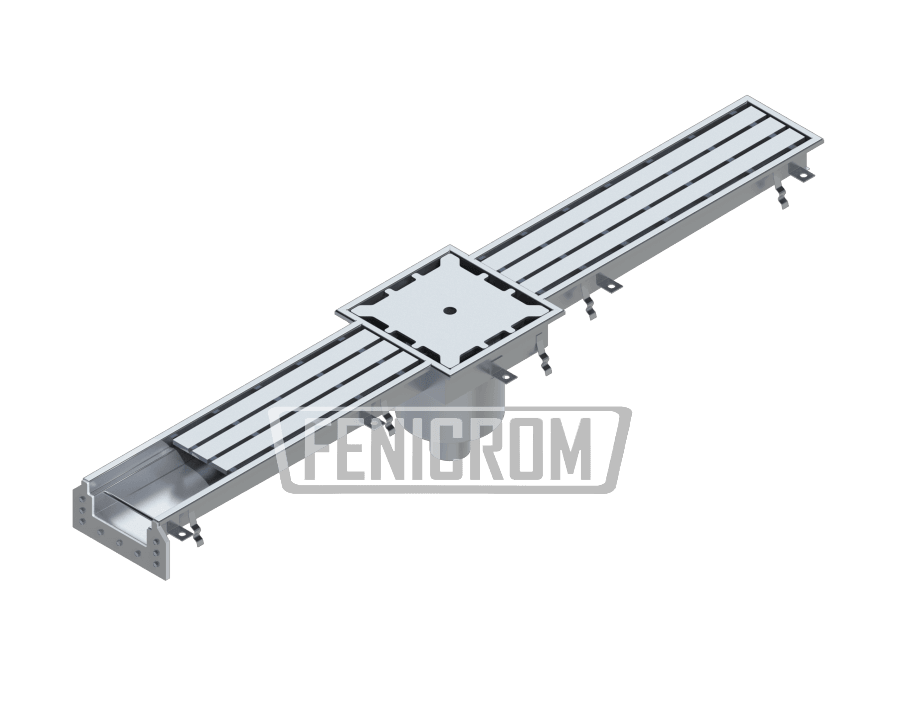 Golvavloppsränna med galler END-OAG-OYG: 250mm DN150 Tung belastning: B125/C250/D400 Horisontell (sidoutlopp) INTE Isolerad