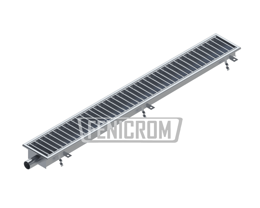 Golvavloppsränna med galler NYD 1Y: 150mm DN100 (110mm) Normal belastning: L15/A15 Horisontell (sidoutlopp) INTE Isolerad